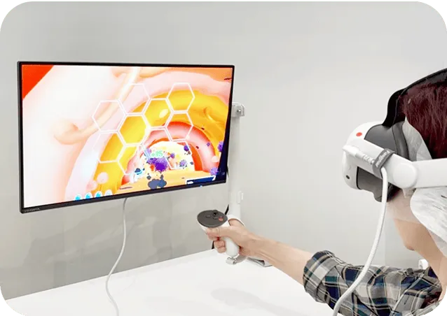 日々の健康情報や野菜摂取量によって変化する武器やアイテム、敵が変化するVRシューティングゲームを提供。「食生活を見直すきっかけになった」「もっと野菜をたべるようにしたい」という体験参加者のコメントも。