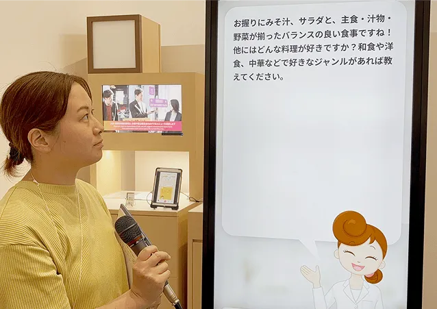 食事データやバイタルデータをもとに、ブース内に設置された3Dスキャナーを活用して自分そっくりのアバターを生成。アバターとの対話を通じて、個別の健康アドバイスを受けられるサービスを提供しました。体験参加者からは「自分にアドバイスをもらえるなんて斬新!」といった声も寄せられました。