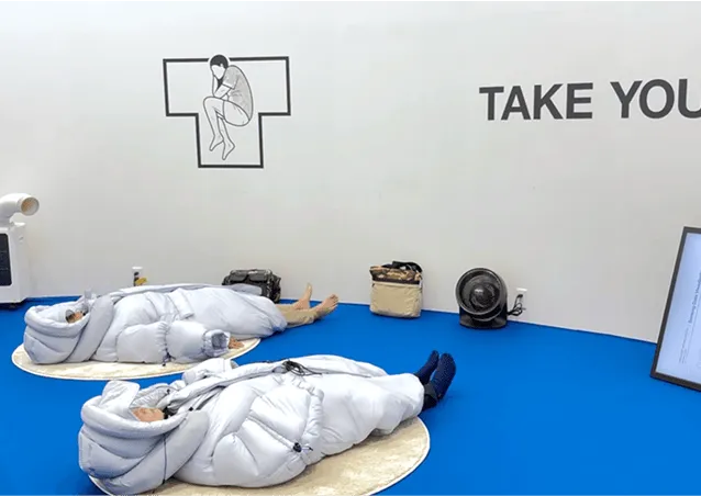 いつでもどこでも快適に眠れる睡眠服「ZZZN SLEEP APPAREL SYSTEM」が大阪・関西万博会場に出現、心拍を測定して音声や光の明滅で秋的な睡眠環境を即座に構築可能