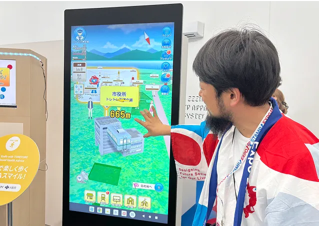 健康診断情報などのPHRを基に、おすすめの現地世界の目的地が提案され、アイテムを収集しながら実際に移動する位置情報ゲーム。万博会場では、ゲームの地図上にパビリオンなども表示され、特別イベント「ミャクミャク集め」にも参加できる特別な体験を提供。体験参加者からは「さっそくインストールしてみた」「ミャクミャクを歩いて集めるのは大変そうだけど楽しみ」といった声が寄せられました。