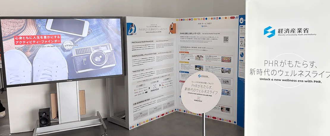 EXPOメッセ「WASSE」内「HEALTH DESIGN」経済産業省ブースでは2つのPHRサービスを展示!HEALTH DESIGNは「健康とウェルビーイング」テーマウィークと連動した、日本のウェルネス・医療の現状を紹介する展示・体験イベントです。会場内は全部で11のブースで構成されており、それぞれのブースで日本の医療の最新機器・情報の他、様々な展示・体験が提供されました。本事業もそのブースの1つとして2つのPHRサービスを出展し、約4万5千人の方にご来場いただきました!